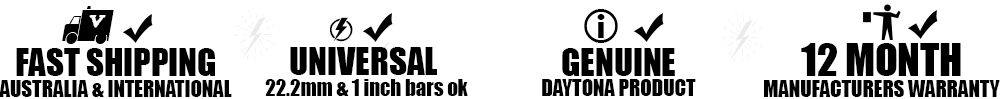 *Can also be used with the DAYTONA or HIGH SIDER bar end adapters as clamp diameter is 30mm. If your bars are too narrow fit directly to the bars or you have switch locator holes, and you preffer the security of adapters, (bought separately), see the range of adapters in mirror accessories or within your bikes mirror parts section, we have various model adapters to suit Kawasaki's, Yamaha, Suzuki's etc. etc.